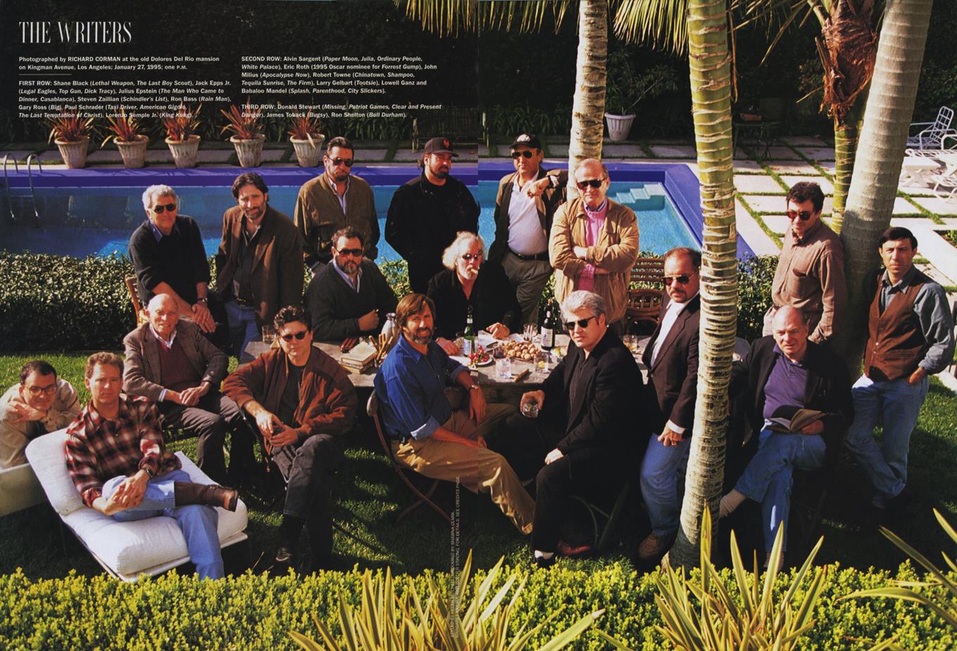 But the real power plays here are the group shots. We get one of The Writers, including Shane Black, Paul Schrader, Eric Roth, John Milius, and Steven Zaillan. No women, though. Not in this shot of dudes with cigars by the pool, like they're an excerpt from The Kid Stays in the Picture. Weirdly, women fare better with The Directors, which includes Penny Marshall and Barbra Streisand alongside kings like Billy Wilder, Alan J. Pakula, and Barry Levinson. This is also a rare instance where one person is featured in two different sections, and of course it's Warren Beatty. He probably thought this issue was about him.