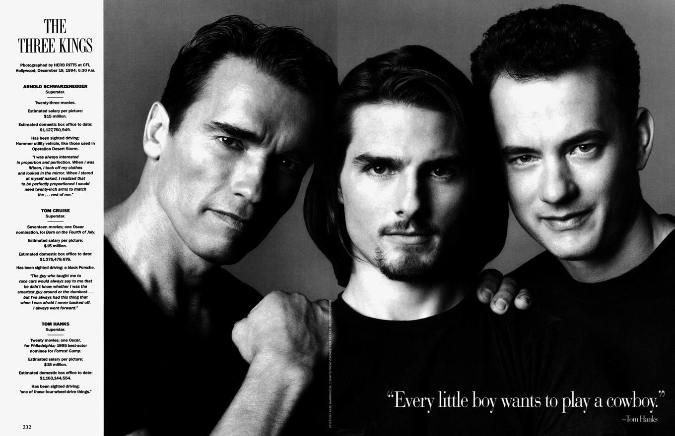 They paid off that promise and then some. The first featured image is of "the three kings": Schwarzenegger, Cruise, and Hanks. Each had an estimated domestic box office gross of over $1 billion. Each pulled in $15 million per picture. Two were Oscar winners or nominees (hey, it could still happen, Arnie.) In the age of the Movie Star, how could you do better than that? Well, following it up with “the ingenue” Julia Roberts didn’t hurt. Then there's Robin Williams! Michael and Kirk Douglas! Harrison Ford! Denzel Washington! Michelle Pfeiffer! They’re all photographed individually, usually by Herb Ritts or Liebowitz, and they all look amazing.