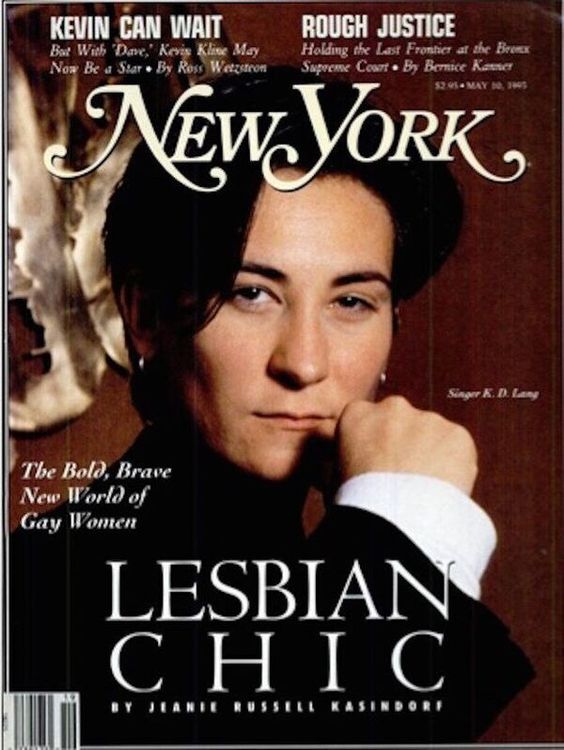 During this period, lang became a poster girl for an interesting cultural and fashion fad: lesbian chic. New York Magazine even put her on their cover as the face of this sudden rebranding of gay women as cool. As noted by Dressing Dykes, 1993 saw a succession of covers and headlines on the seeming prevalence of lesbians in the mainstream, offering a presumed heterosexual audience an insight into a new normal. This would often be qualified with a lot of details. A Newsweek cover story on lesbians included the leading question, "what are the limits of tolerance?"